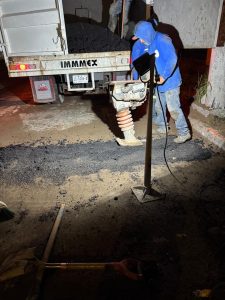 Durante los trabajos se instaló un nuevo drenaje con tubo de 6 mm, en un tramo largo y profundo. Asimismo, se detectó una tubería de gas, lo que requirió extremar precauciones para garantizar la seguridad en la obra.